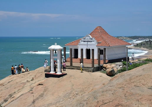 picturesque beach and a Buddhist vihara situated atop a large, round rock. The area is